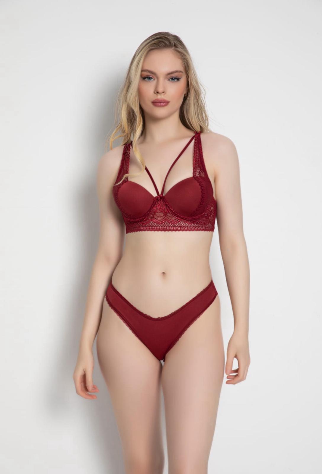 Dolgusuz Çapraz İpli Sütyen Takımı Bordo